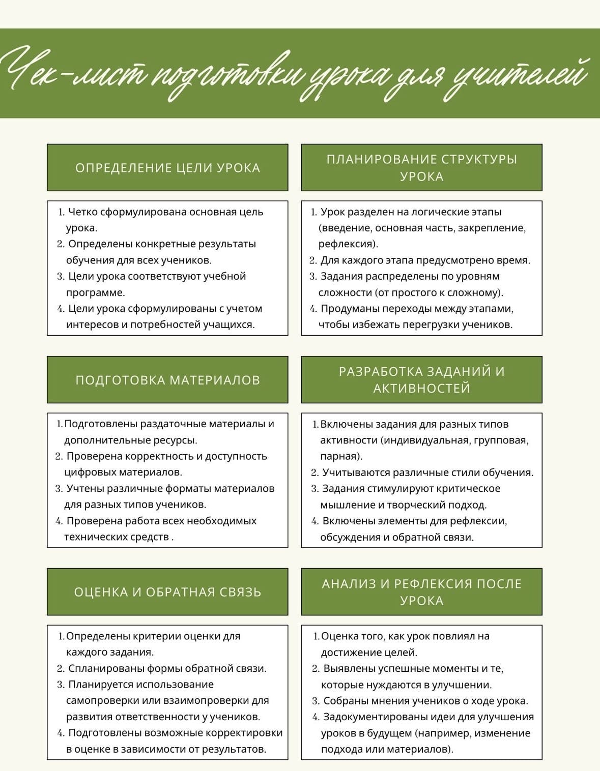 Организовать учебный материал в логичной последовательности, обеспечить смену видов деятельности для поддержания активности и вовлечённости учеников.